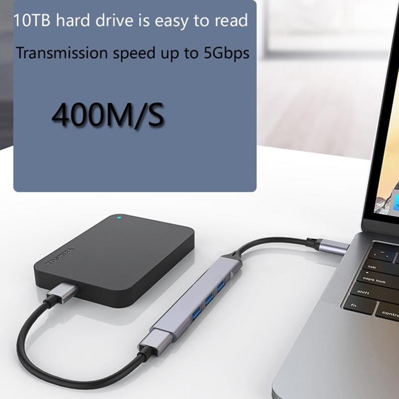 4-i-1 USB-C-hub med 1x USB 3.0 + 3x USB 2.0 - øjeblikkelig portopgradering til bærbare computere, tablets og telefoner