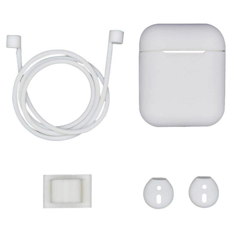 4-i-1 Silikone Tilbehørssæt til Apple AirPods, AirPods 2 - silikonecover, strop til halsen, holder til ørepuder, cover til ørepuder