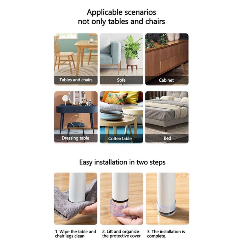Er du træt af at høre stole skrabe mod gulvet eller bekymre dig om ridser i dit træ- eller laminatgulv? Disse gennemsigtige gummibenhætter er en enkel, men effektiv måde at beskytte dine gulve på, reducere støj og holde dine møbler stabile. Der er ikke brug for lim eller klæbepuder - bare sæt dem på dine stole- eller bordben, så sidder de sikkert fast.