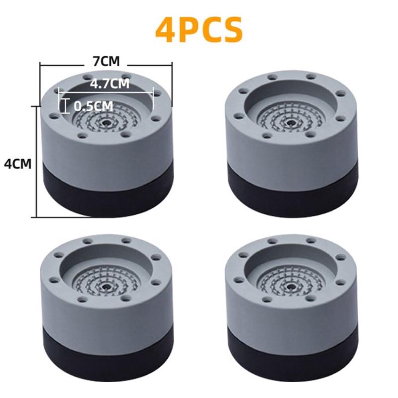 4 stk. anti-vibrationsfodpuder til vaskemaskine Støjdæmpende hæve-sænke-måtte til vaskemaskine og tørretumbler - grå