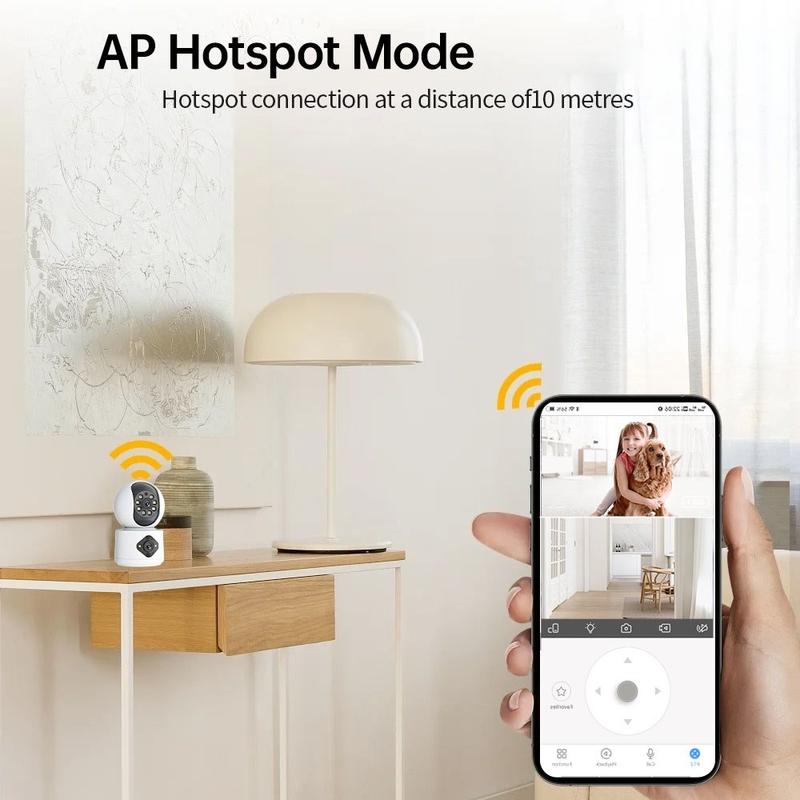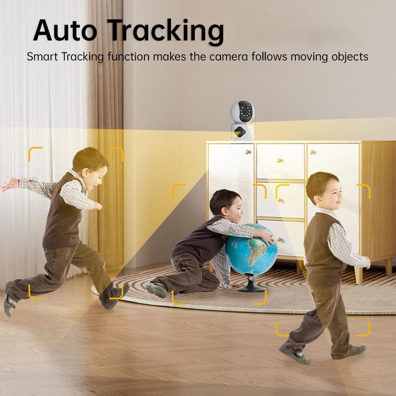 4MP WiFi-sikkerhedskamera med dobbelt linse og 360 graders sporing, tovejslyd og nattesyn
