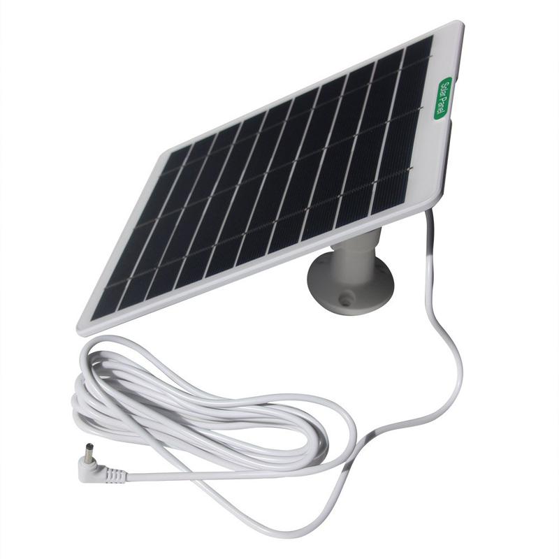 Hold dit udendørs kamera eller din sikkerhedsdørklokke opladet med mindre batterivedligeholdelse. Dette 5,3 W monokrystallinske solcellepanel leverer en stabil 5 V-udgang via et DC 3,5 x 1,35-stik, hvilket gør det til en praktisk strømløsning til mange 3 V-5 V batteridrevne overvågningsenheder. Monter panelet på et solrigt sted, og lad det oplade din enhed i dagslys, hvilket hjælper med at reducere nedetid og behovet for at tage dit kamera ned for at genoplade det.