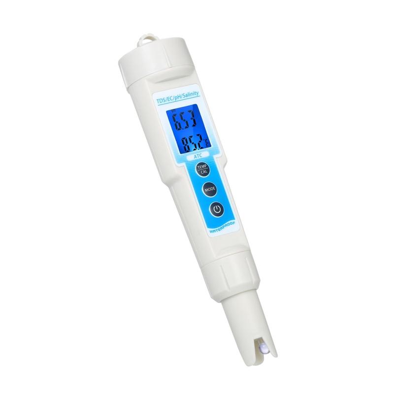 Multifunktionel tester: har 5 slags funktioner, herunder test af TDS, EC, pH, saltholdighed og temperatur i væsker.