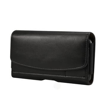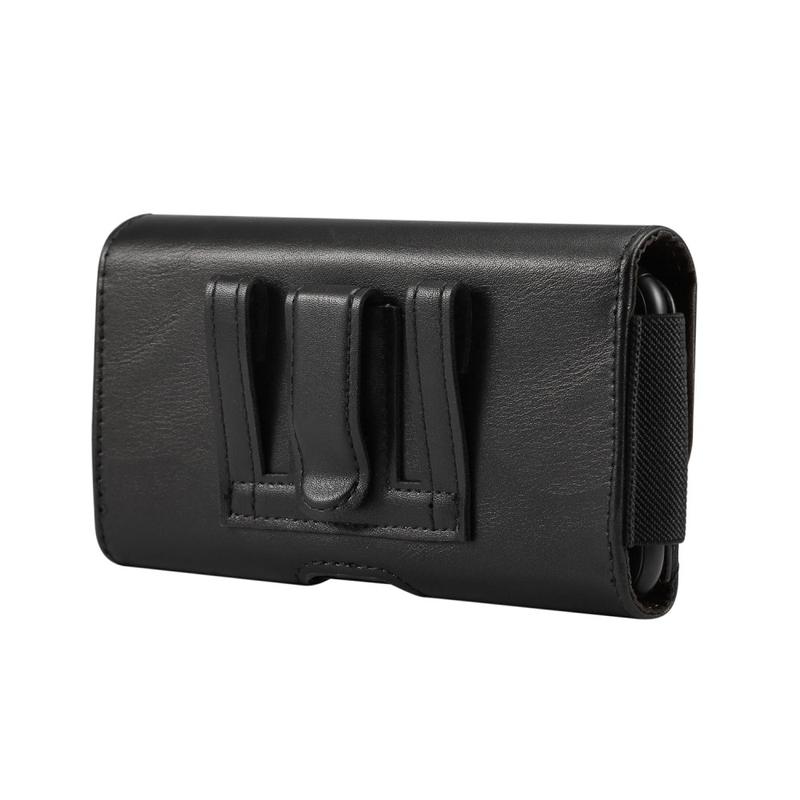 Universal Læder Bæltetaske Cover med Bælteløkke - L - Sort
