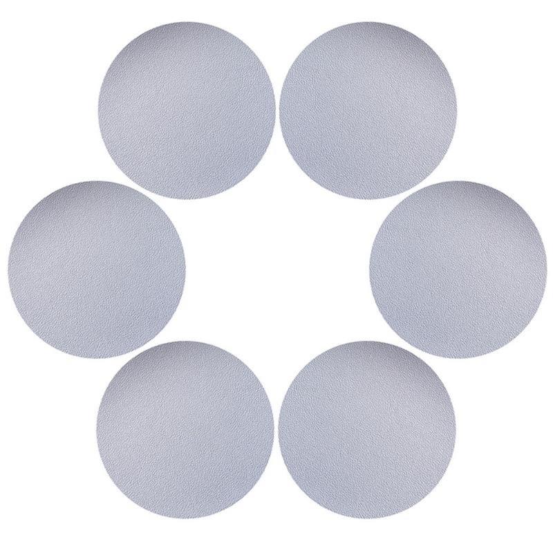 6 Stk. Coasters i PU Læder Ø 10 cm - Sølv
