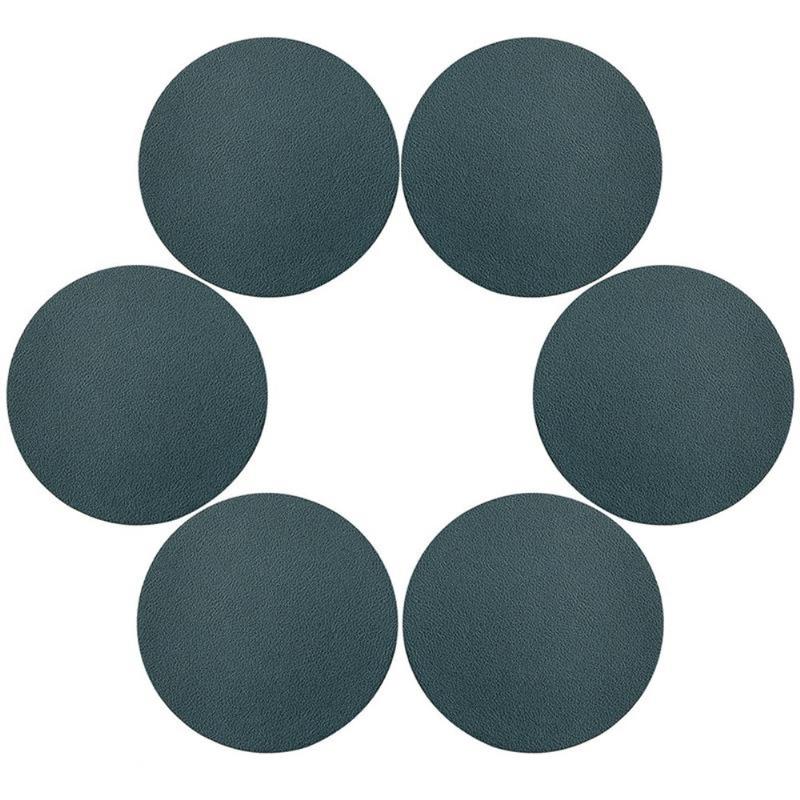 6 Stk. Coasters i PU Læder Ø 10 cm - Mørkegrøn
