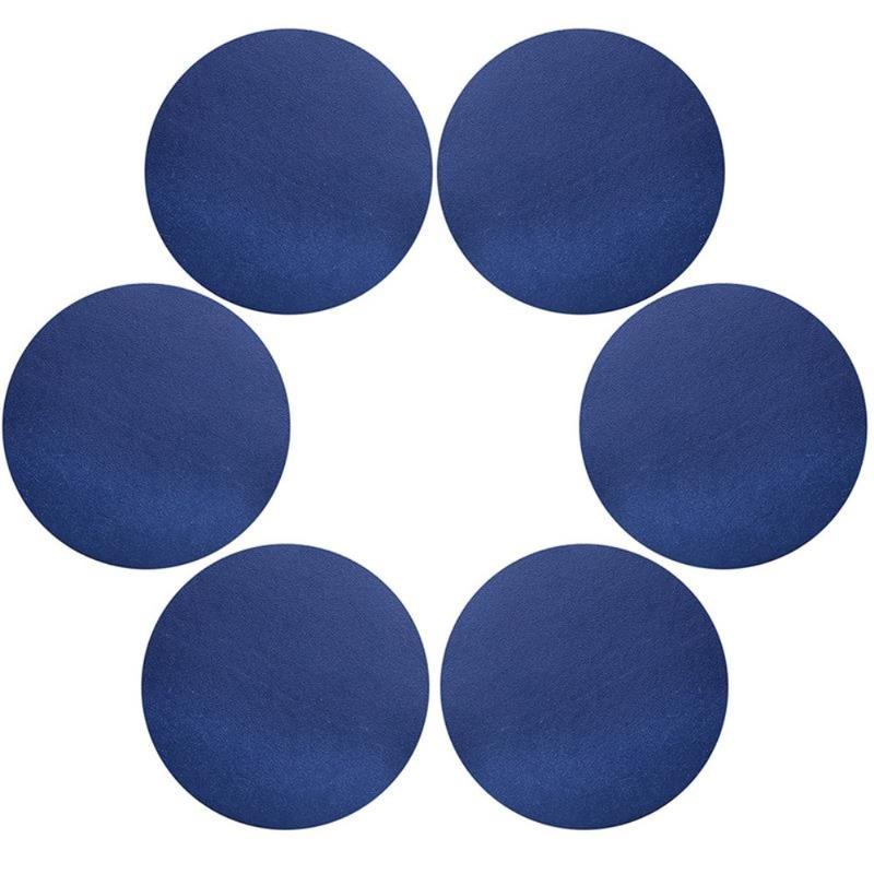 6 Stk. Coasters i PU Læder Ø 10 cm - Mørkeblå