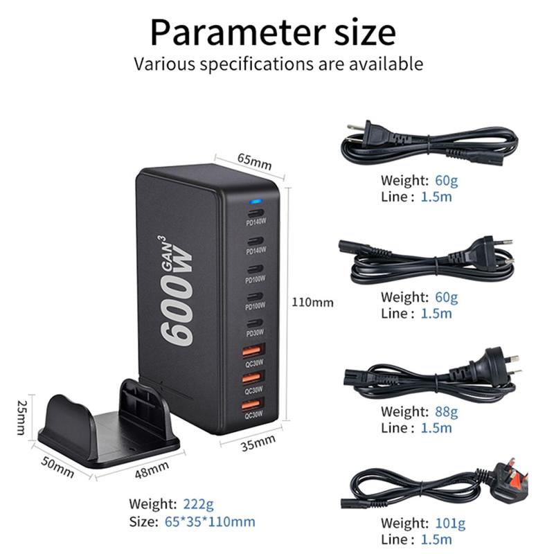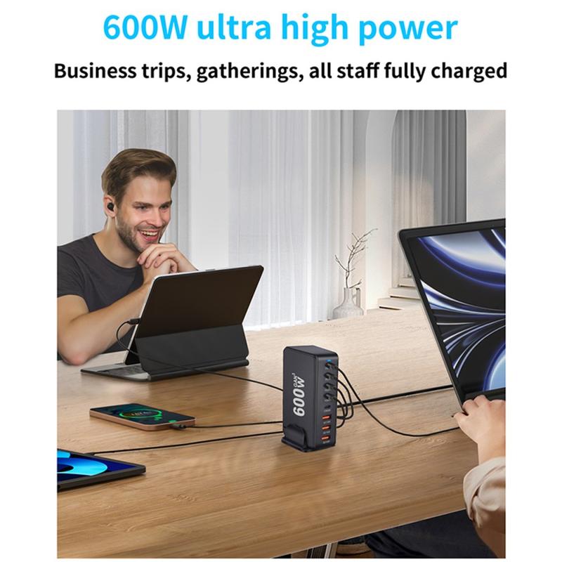 - Massiv 600W samlet output til opladning af flere enheder fra én station