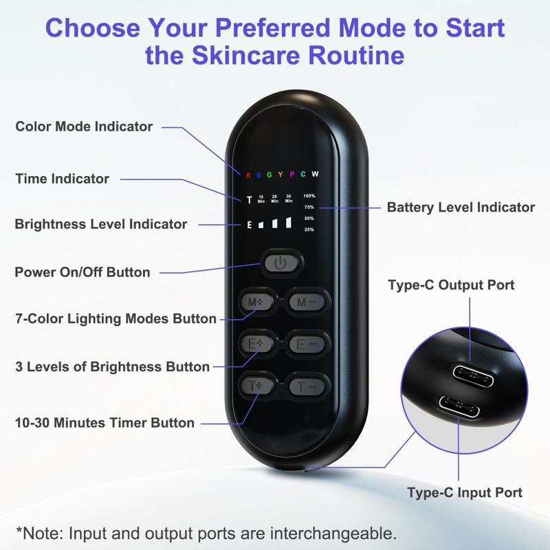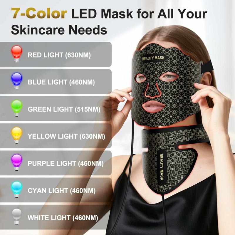 Denne LED-lysterapimaske bruger 7 målrettede lysfarver – rød, blå, grøn, gul, lilla, cyan og hvid – til at behandle flere hudproblemer, såsom mathed, ujævn hudfarve, pletter og tegn på aldring. Hver bølgelængde er designet til at understøtte en sundere hud gennem en skånsom, ikke-invasiv behandling.