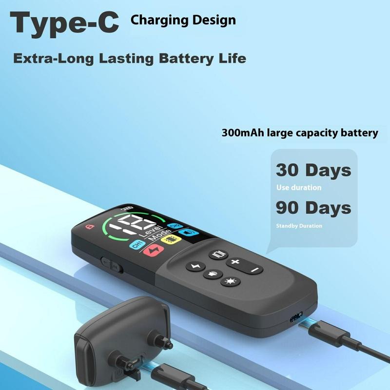 - Lys LCD på begge enheder - se batterilevetid, aktiv tilstand og halsbåndets lommelygte på et øjeblik; fjernlåskontakt forhindrer utilsigtede tryk i lommen.