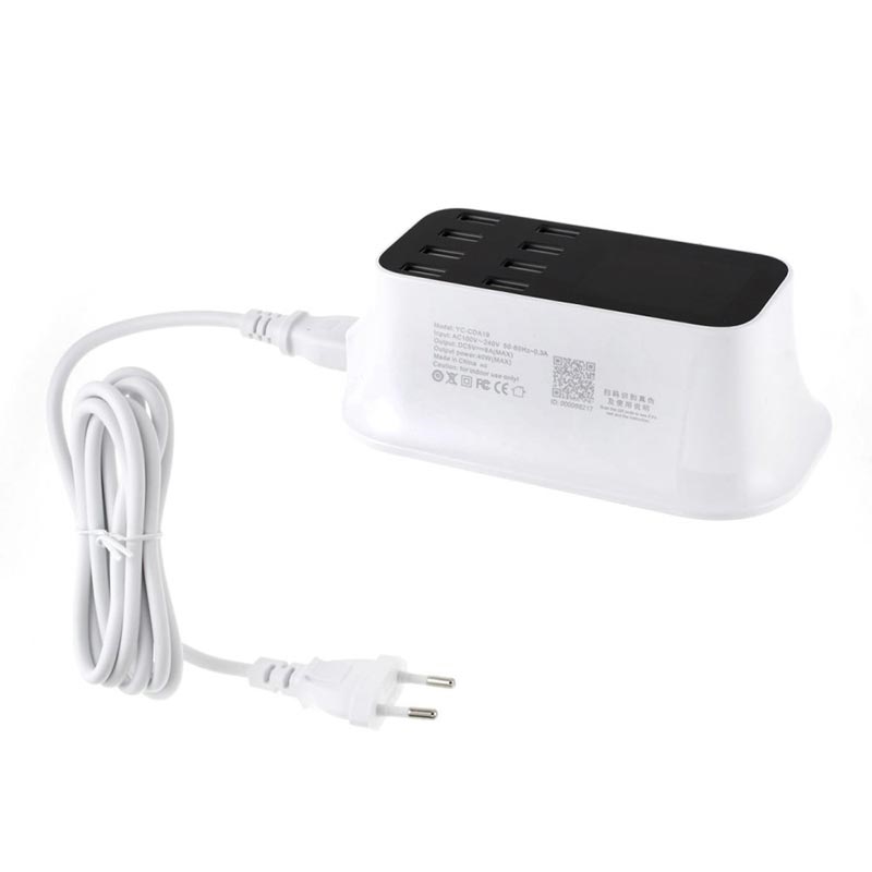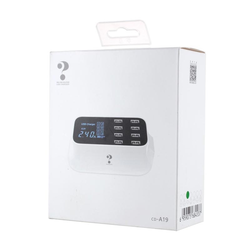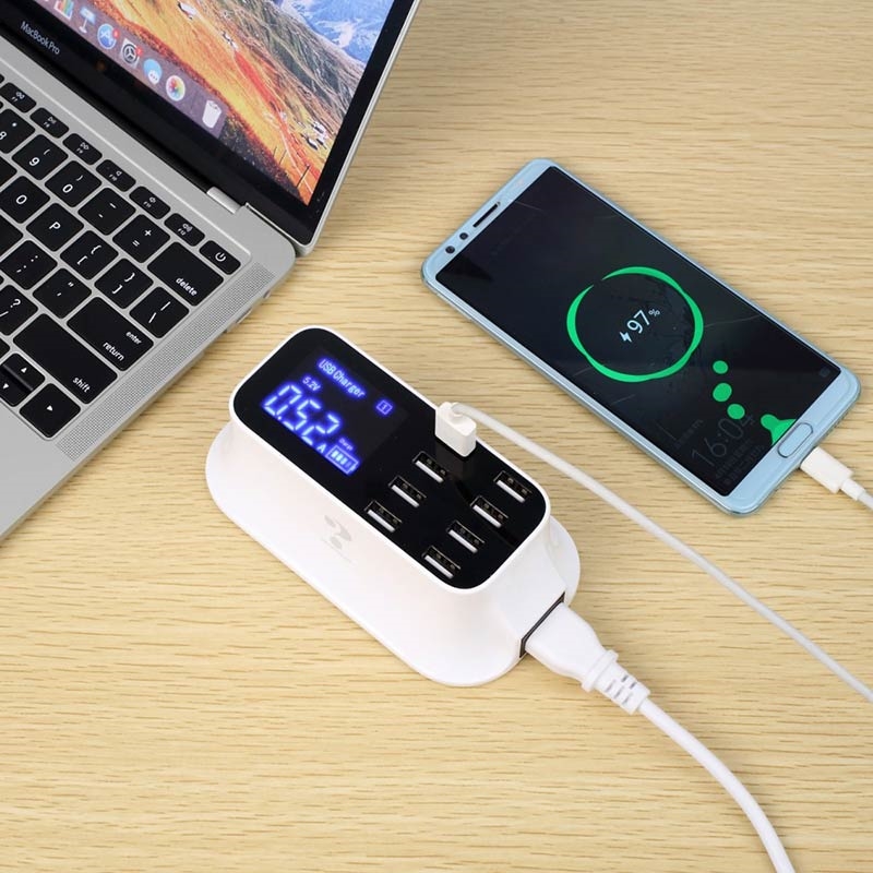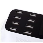 Oplad op til 8 enheder med denne 8-Port USB Dockingstation med LED skærm. Den indbyggede LED skærm gør at du kan se strømstyrken, volt og batteristatus i real-time. Den har en smart strømfordeling og 8-Port USB Dockingstationen med LED skærm genkender automatisk enheden og tildeler den optimale strømstyrke. Den ultimative smarte oplader læser hvilken strømstyrke din enhed maksimalt kan trække. Og når din enheds batteri når fuld kapacitet, nedsætter den automatisk opladningshastigheden. Når din enhed er helt oplader, ændrer den indstillingen til trickle-opladning. 8-Port USB Dockingstationen med LED skærm er beskyttet mod kortslutning, overgang og overopladning, så du kan være helt tryg, når den oplader dine enheder.