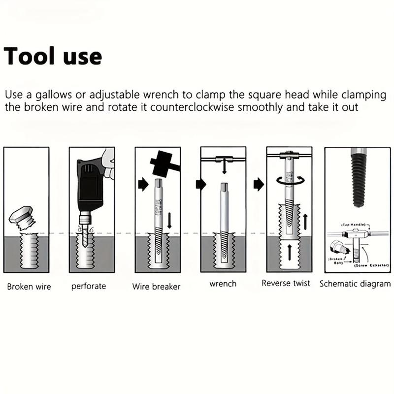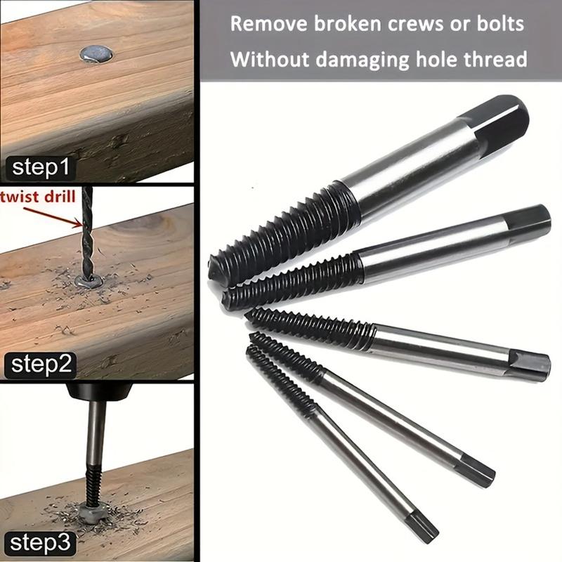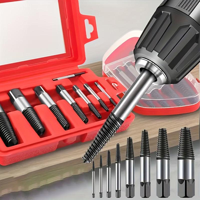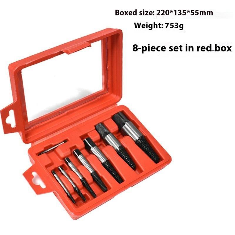 Frigør fastklemte skruer, knækkede bolte eller knækkede vandrør uden at bore dem ud. Dette udtrækkersæt med otte dele er fremstillet af varmebehandlet stål med højt kulstofindhold for maksimal vridningsstyrke og bid. Hvert venstre gevind graver sig dybere, når du drejer, og griber sikkert fat, så det beskadigede fastgørelseselement ryger rent ud - ideelt til VVS, bilreparationer og husholdningsvedligeholdelse.