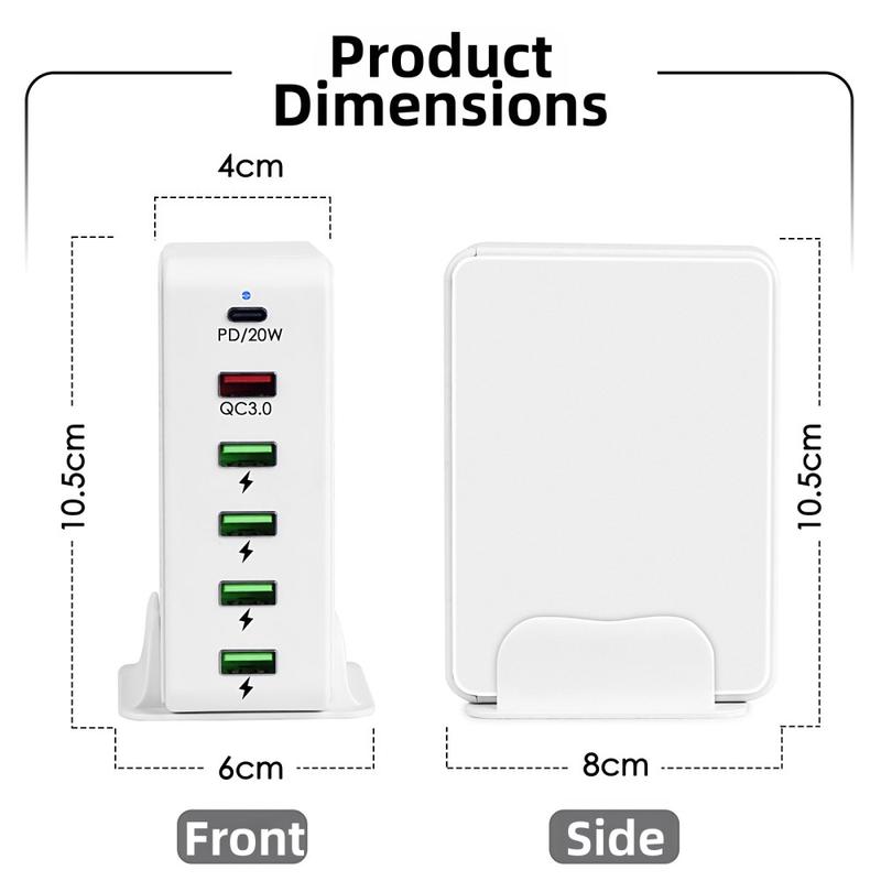 Oplad smartere med 818PD Multi-Port Charging Station, der er konstrueret til at levere pålidelig højhastighedsydelse til alle dine enheder. Denne kompakte opladningshub understøtter både PD20W- og QC3.0-hurtigopladningsprotokoller og sikrer, at din smartphone, tablet eller tilbehør får strøm hurtigt og sikkert, uanset hvor du er.