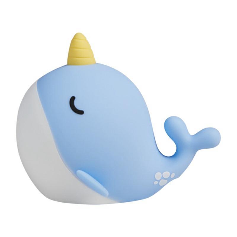 Blød silikone spreder LED-lyset jævnt og skaber en beroligende atmosfære, der har vist sig at hjælpe børn med at sove bedre og reducere stressniveauet hos voksne - hvilket gør narhvalslamperne både søde og virkelig beroligende.