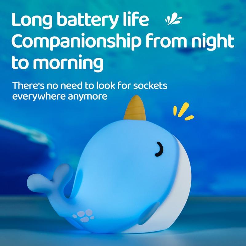 Bring et strejf af havets magi ind i dit hjem med A044 Narwhal silikone natlampe. Med sit charmerende narhval-design og uimodståeligt bløde silikonekrop tilfører denne lampe varme, personlighed og ro til ethvert rum. Den er perfekt til både børn og voksne og er mere end bare et lys - det er en beroligende følgesvend, der gør sengetid eller afslapning til et fredeligt ritual.