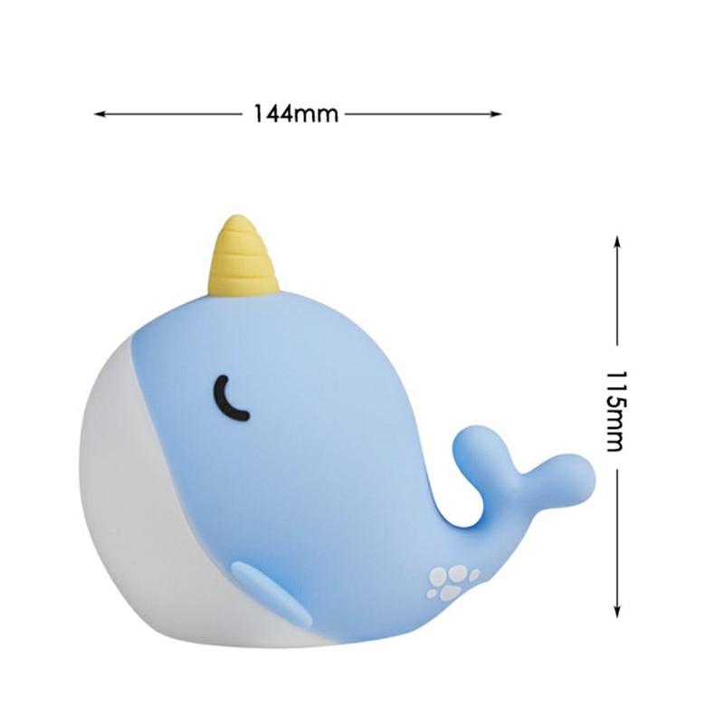 A044 Narhval-natlys i silikone - trykstyring, USB-C genopladelig og blød, omgivende glød