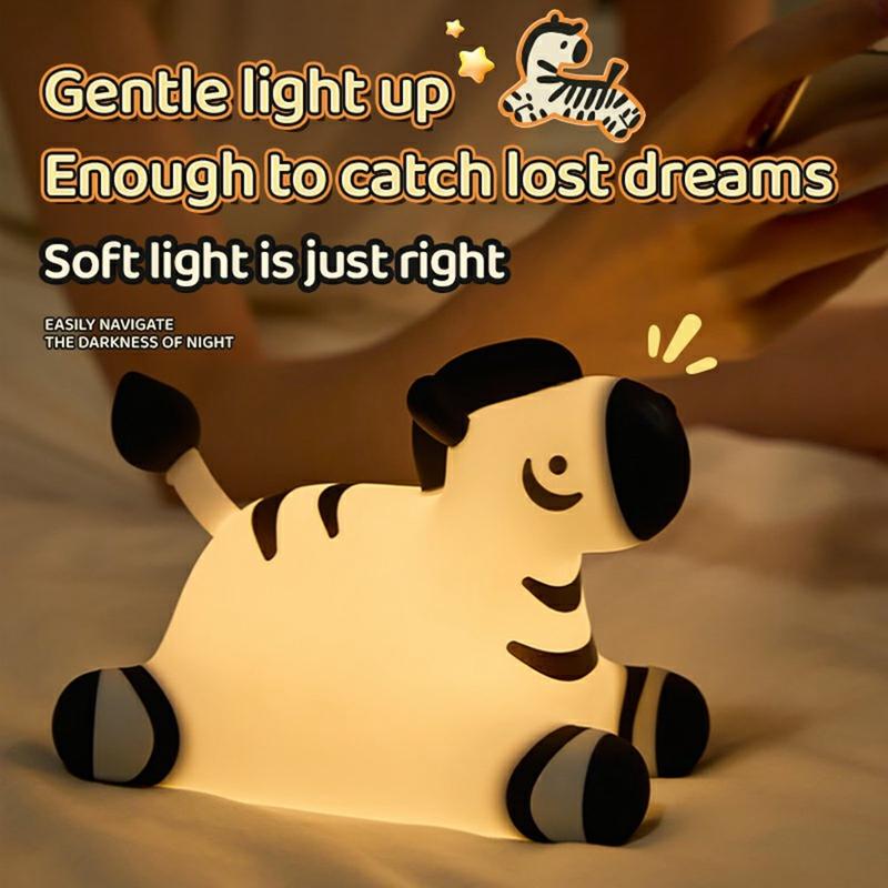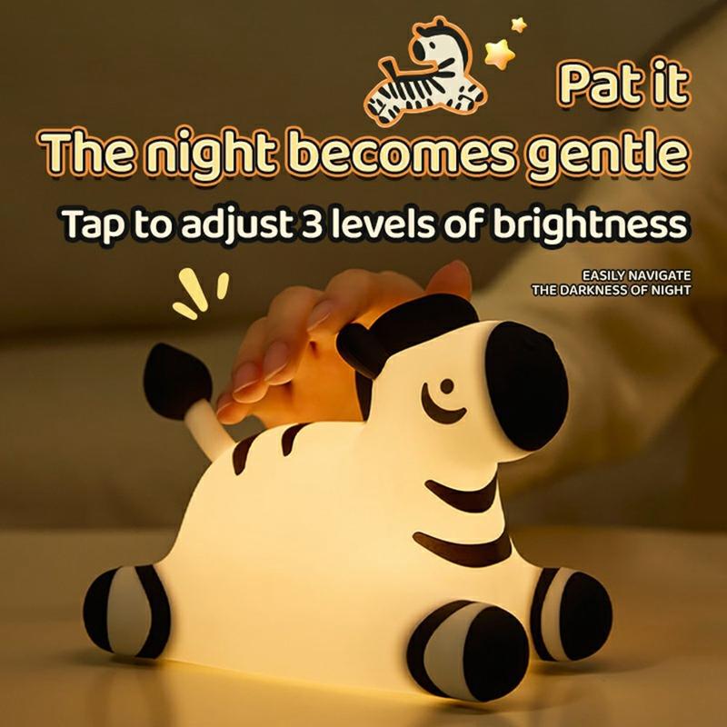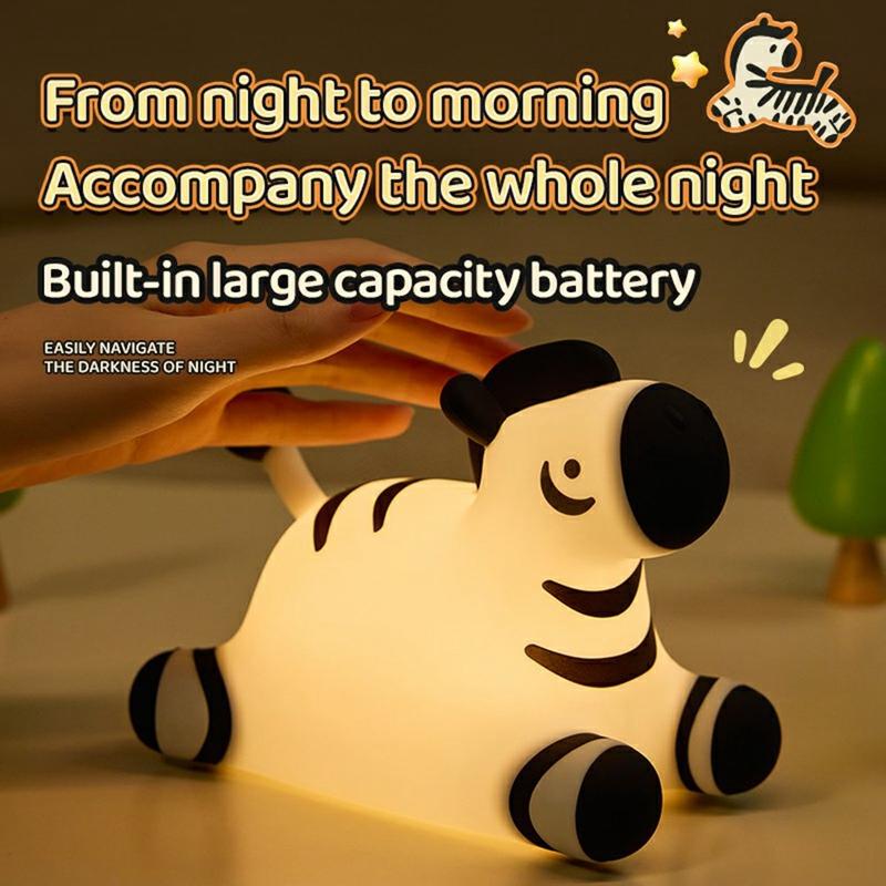 A067 Zebra-silikone-natlys - trykstyring, genopladelig og blød, omgivende glød
