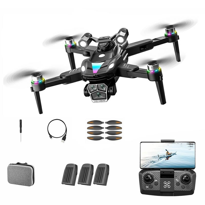 A168 børsteløs drone - foldbar quadcopter med forhindringsfrihed, dobbeltkameraer, optisk flow og 3 batterier