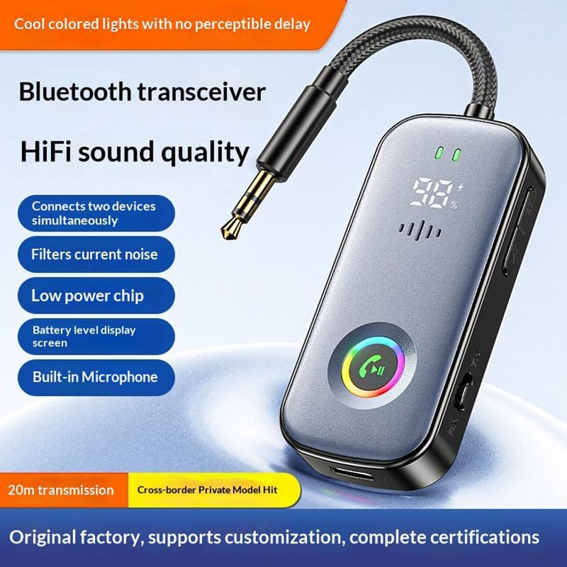 A6 Pro Bluetooth-lydmodtager og -sender til biler / Bluetooth 5.2 AUX-adapter med RGB-belysning