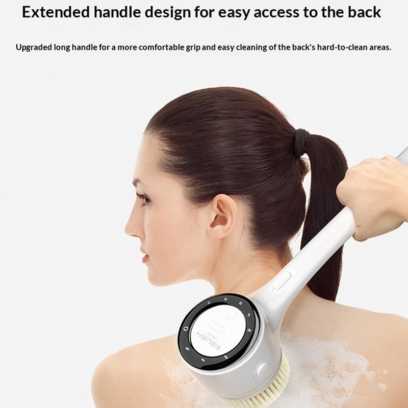 Den elektriske brusebørste A8 med LED-display er en genopladelig rygskrubber med langt håndtag, 3 hastighedsindstillinger, rotation i to retninger og 5 udskiftelige børstehoveder. Den er designet til vandtæt brug i brusebadet, rengøring af hele kroppen, fodpleje og massage og er et praktisk redskab til kropspleje, der gør det daglige bad mere bekvemt og effektivt.