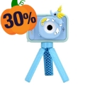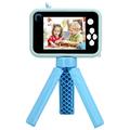 Børnekamera med Stativ - 1080P HD, Dobbeltkamera og Vidvinkel - Blå