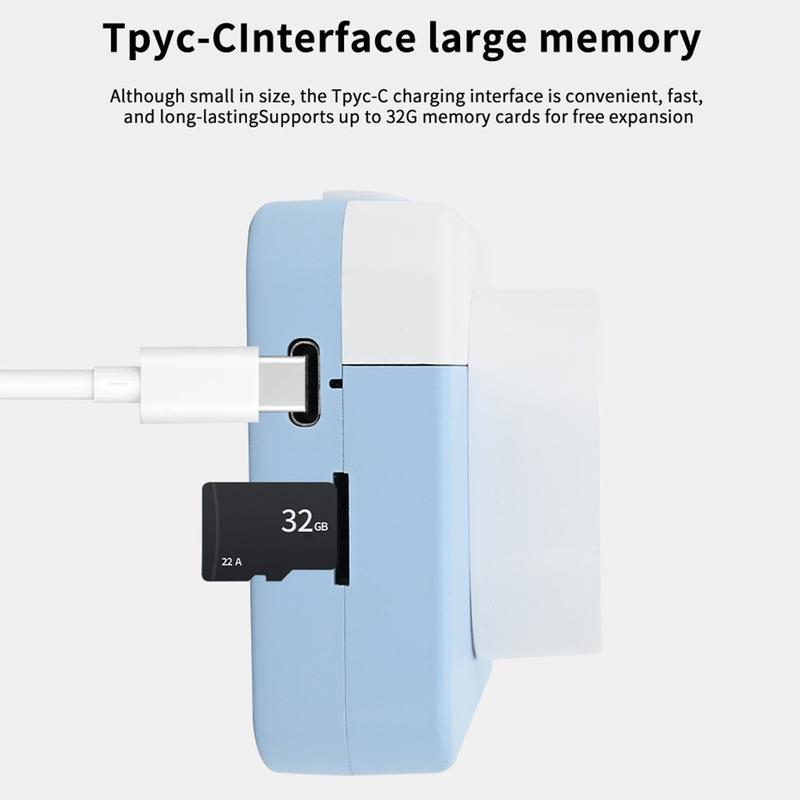 Med en optagetid på op til 5 timer og hurtig opladning via Type-C-port er kameraet ideelt til langvarig leg og læring. Perfekt som en gave til små eventyrere og fremtidige fotografer!