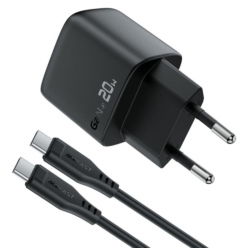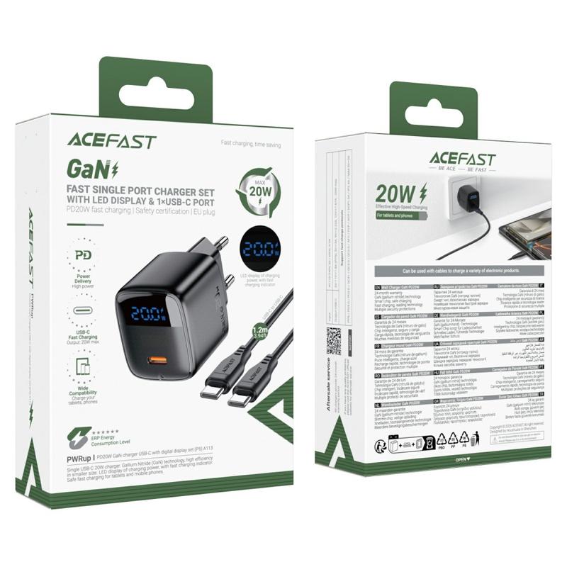 Acefast A113 20W GaN-oplader med USB-C-kabel og LED-strømvisning