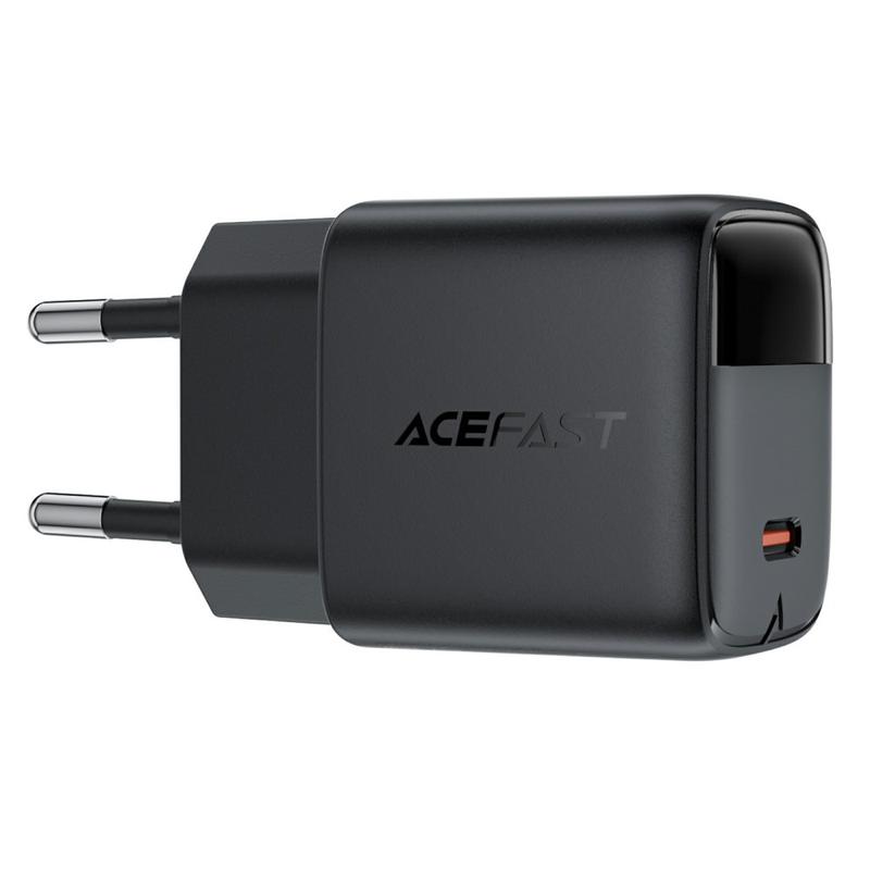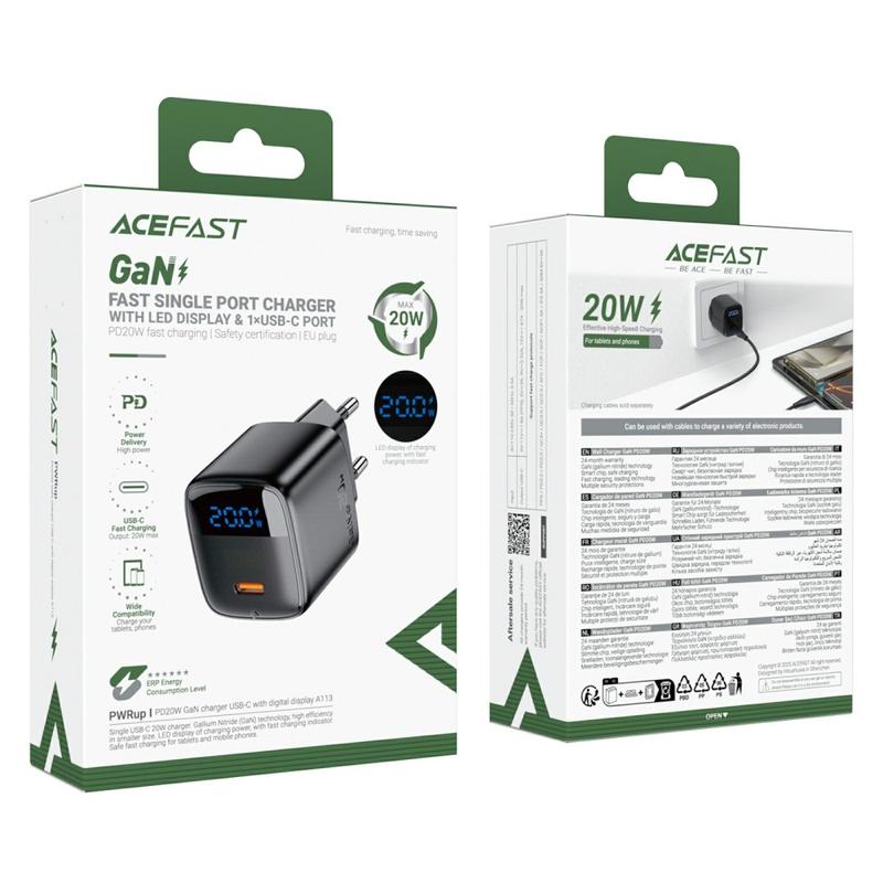 Acefast A113 20W GaN USB-C-oplader med LED-strømvisning - sort