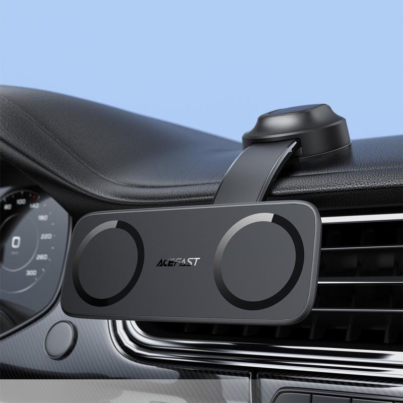 ACEFAST D60 skiller sig ud med sit dobbeltmagnetiske design, der giver dig den sjældne fordel at kunne montere to smartphones på én gang. Dens stærke magneter, ridsebeskyttende silikonepolstring og fleksible betragtningsvinkler gør den betydeligt mere alsidig end standardbeslag til en enkelt telefon. Den er bygget af holdbare materialer og konstrueret til sikker montering på instrumentbrættet og holder dine enheder stabile, synlige og tilgængelige, så du kan køre mere sikkert og effektivt.