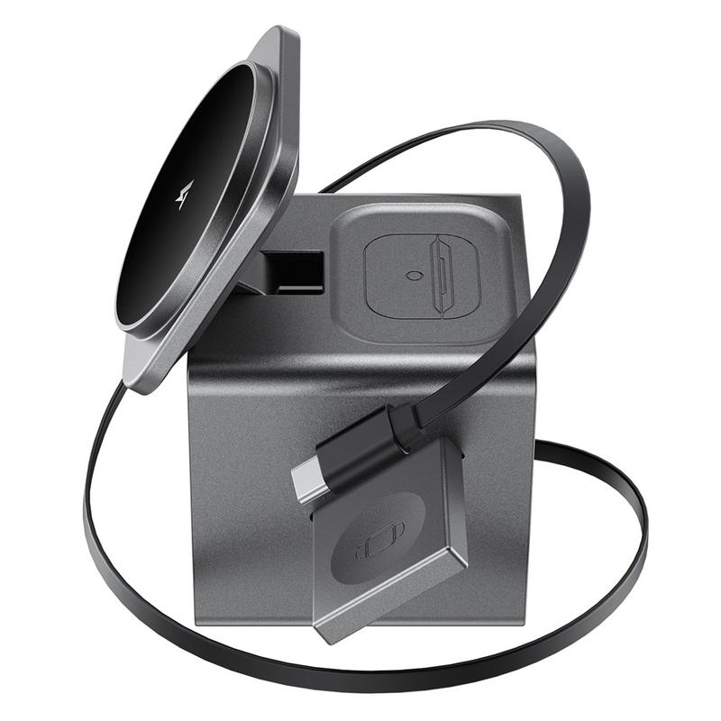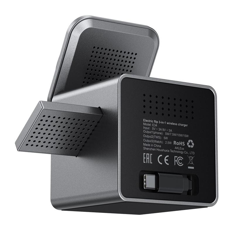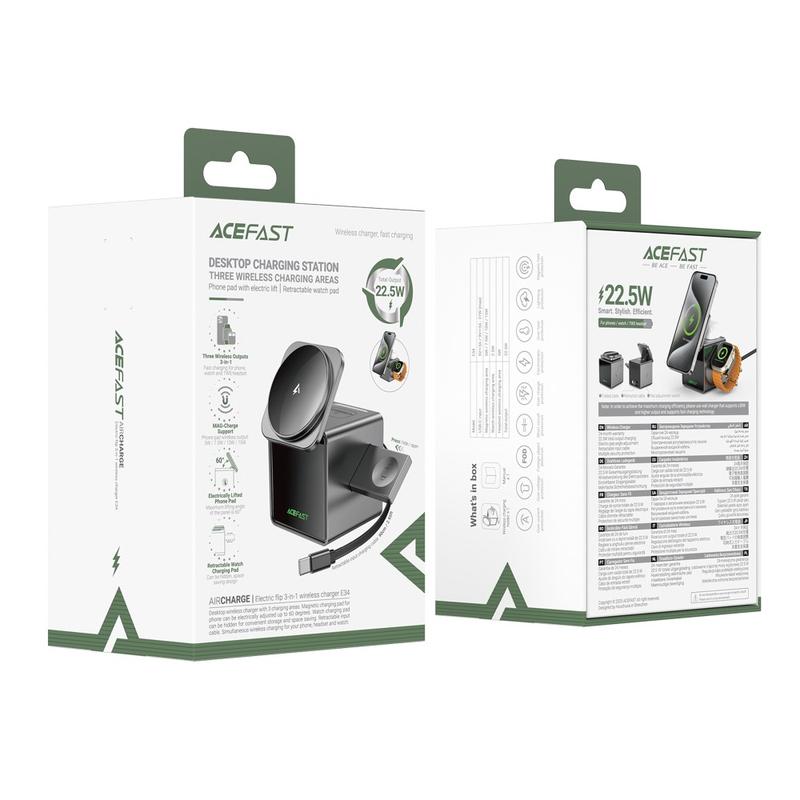 Acefast E34 3-i-1 magnetisk trådløs opladningsstation med elektrisk flip til smartphone, smartwatch og øretelefoner - 15W, 5W, 2,5W