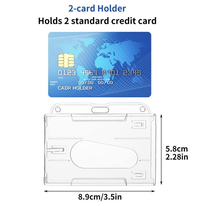 - To vandrette åbninger til to standardkort på 86 × 54 mm (ID + adgangskort, rejsekort + personalebadge)