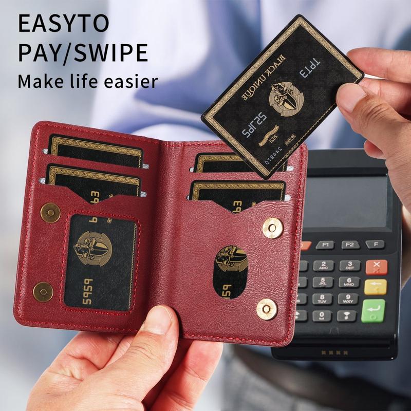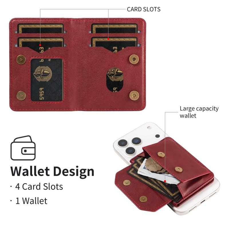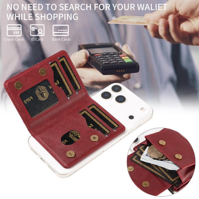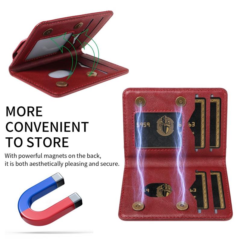 Pungen er lavet af kunstlæder af høj kvalitet og har et raffineret udseende med en blød, holdbar fornemmelse. Dens slanke og lette profil passer nemt i lommer eller jakker og kan også bruges som en selvstændig pung, når den er løsrevet fra telefonen.