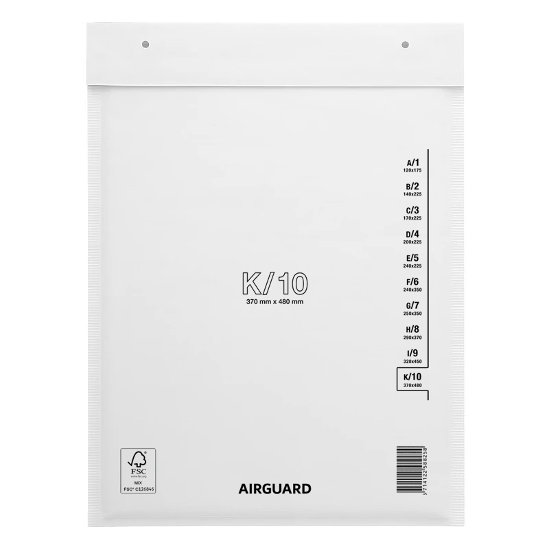 AirGuard Boblepolstret kuvert K10 - Indvendige mål: 345x455mm, udvendige mål: 370x480mm