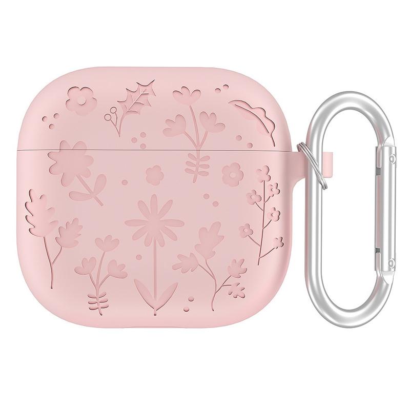AirPods 4 Etui i flydende silikone med blomstermønster og karabinhage - Lyserød