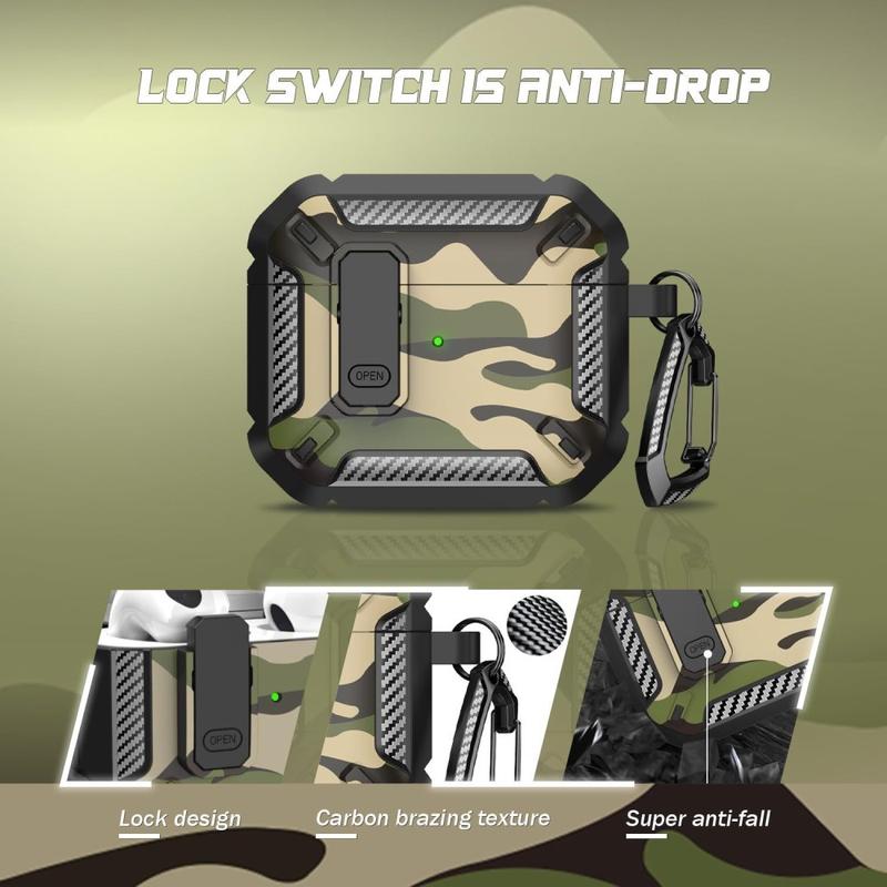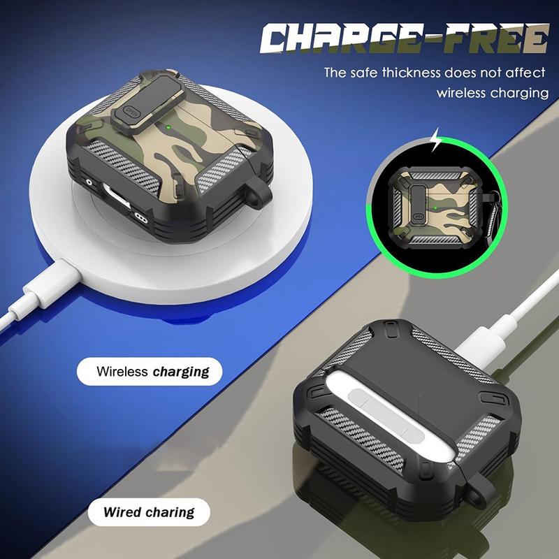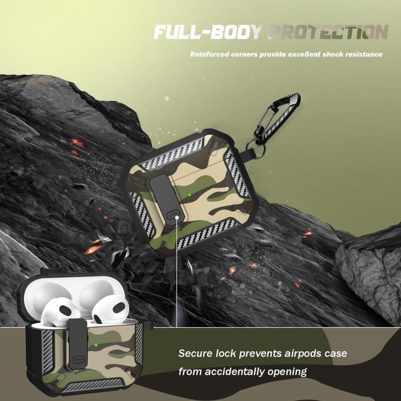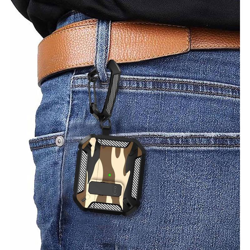 Stødsikkert TPU-etui i camouflagemønster med karabinhage til AirPods 4 - med understøttelse af trådløs opladning