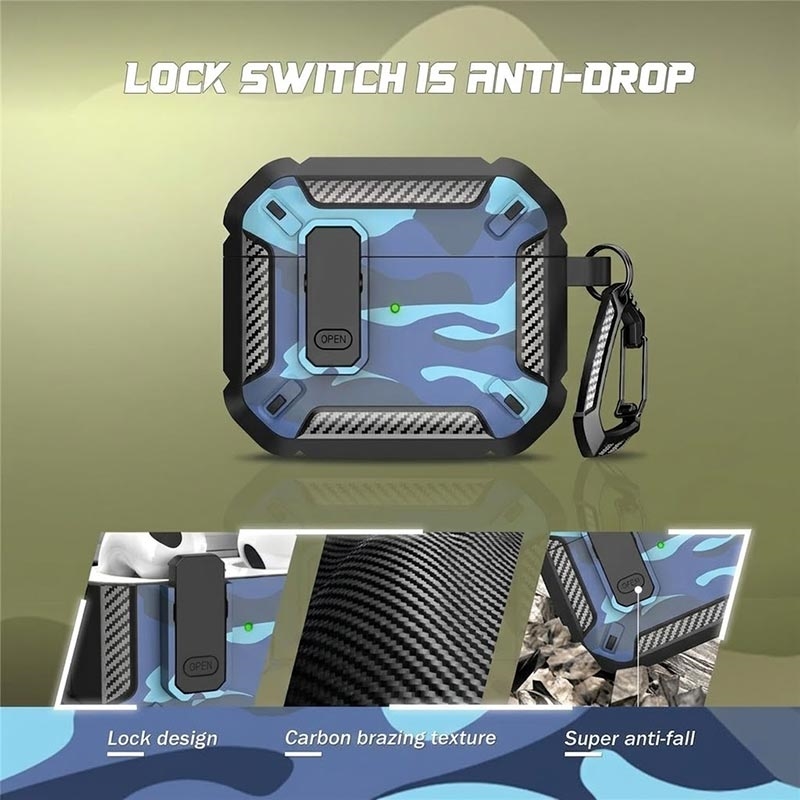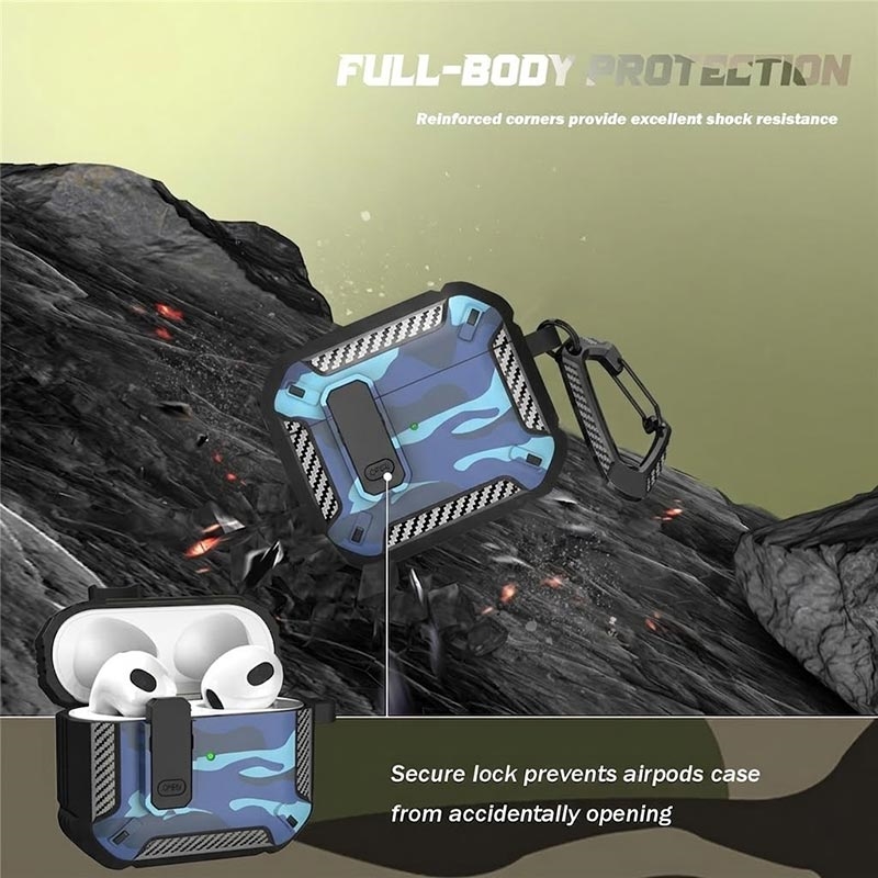 Stødsikkert TPU-etui i camouflagemønster med karabinhage til AirPods 4 - med understøttelse af trådløs opladning