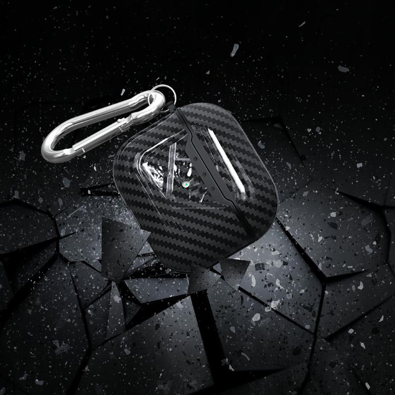 TPU Cover med Karabinhage til AirPods 4 - Karbonfiber