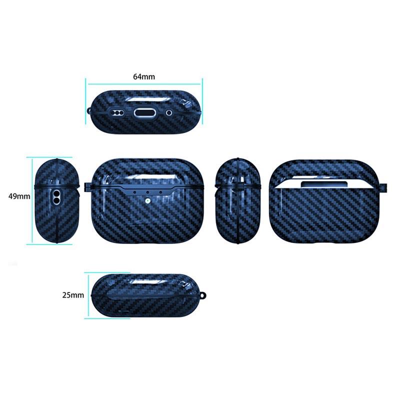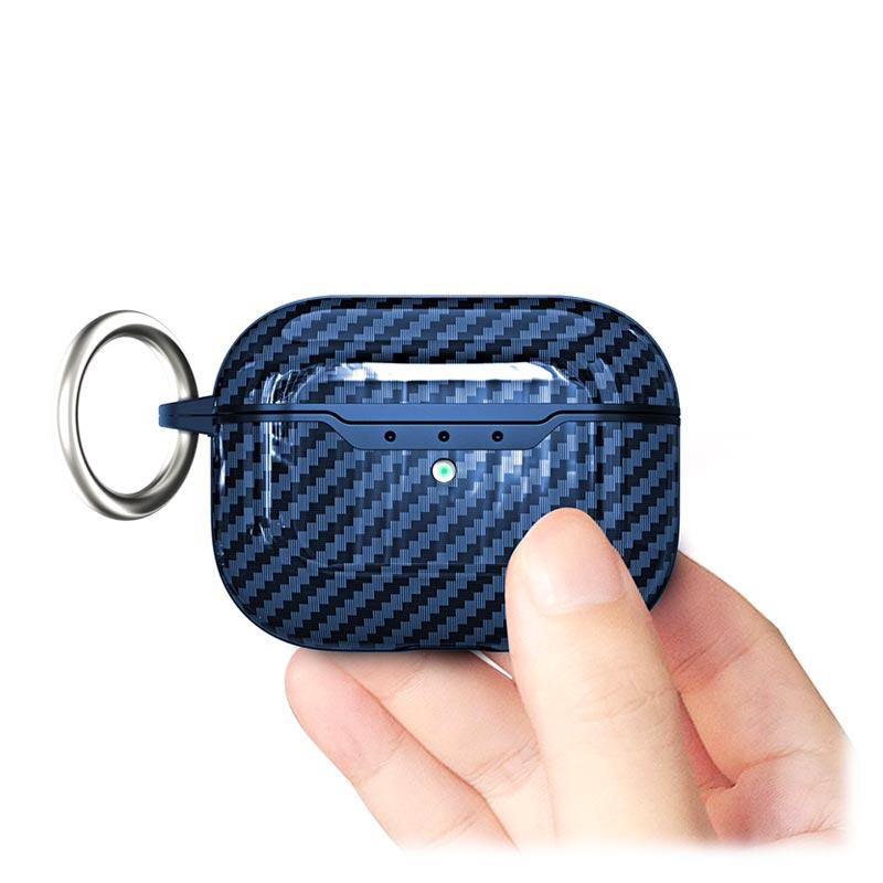 AirPods Pro 2 TPU Cover med Karabinhage - Karbonfiber - Blå