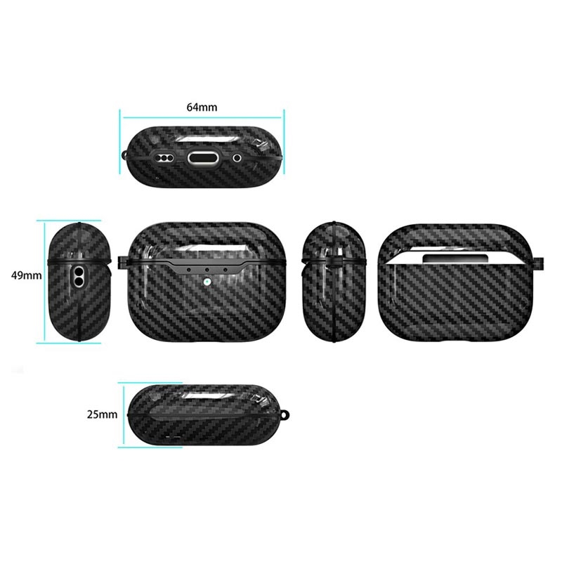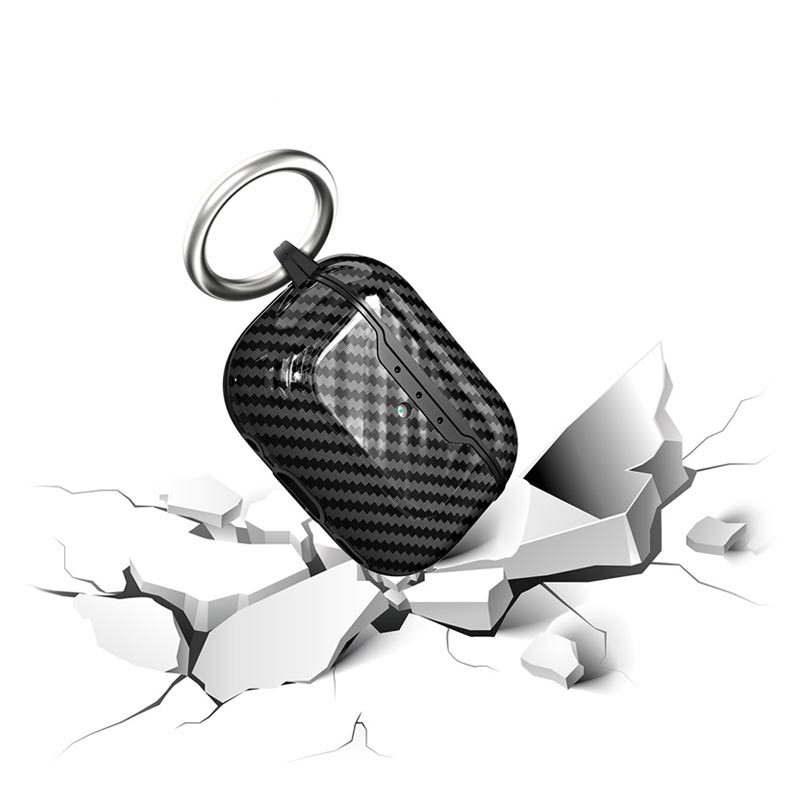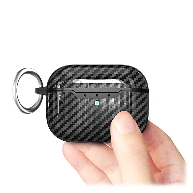 TPU Cover med Karabinhage til AirPods Pro 2 - Karbonfiber