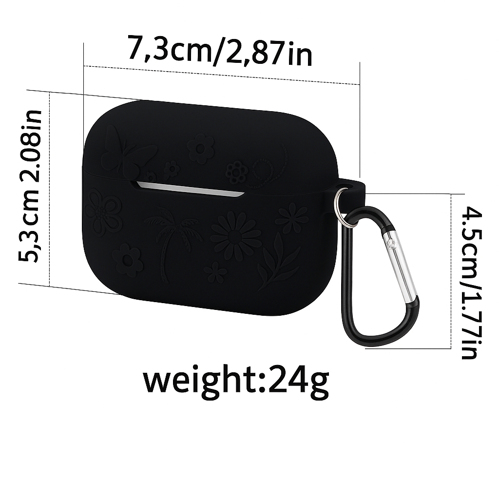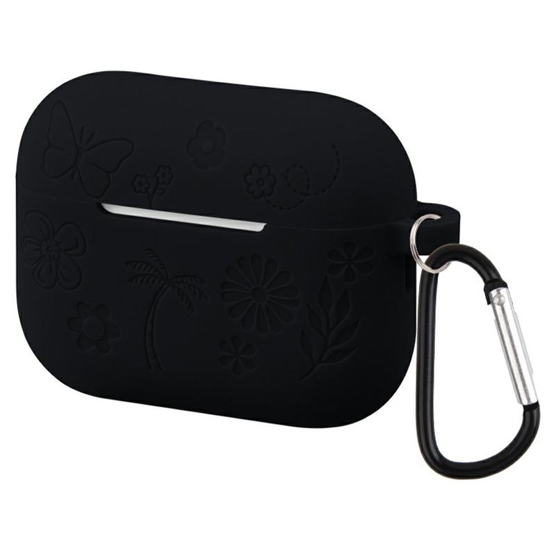 AirPods Pro 3 Etui i flydende silikone med blomstermønster og karabinhage - Sort
