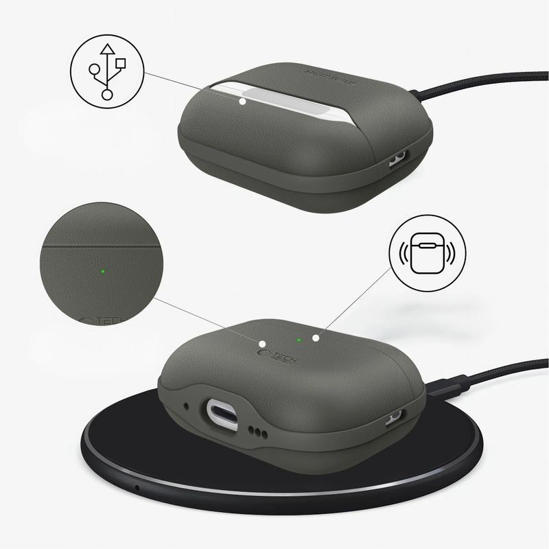 AirPods Pro 3 Tech-Protect NaturalFit læderetui - olivengrøn