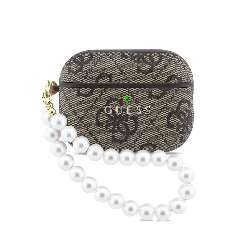 AirPods Pro 3 Guess 4G Classic Logo etui med perlestrop - brun