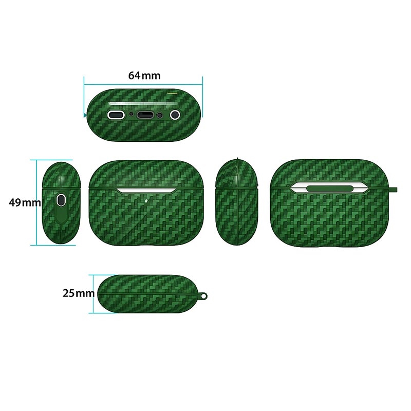 AirPods Pro 3 TPU Cover med Karabinhage - Karbonfiber - Grøn
