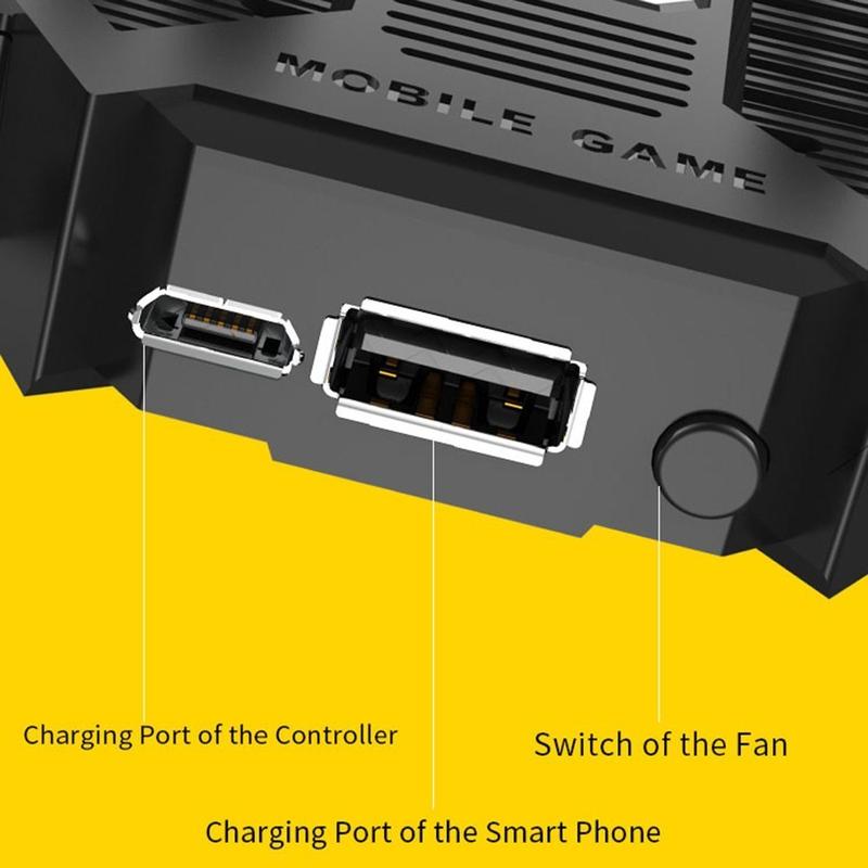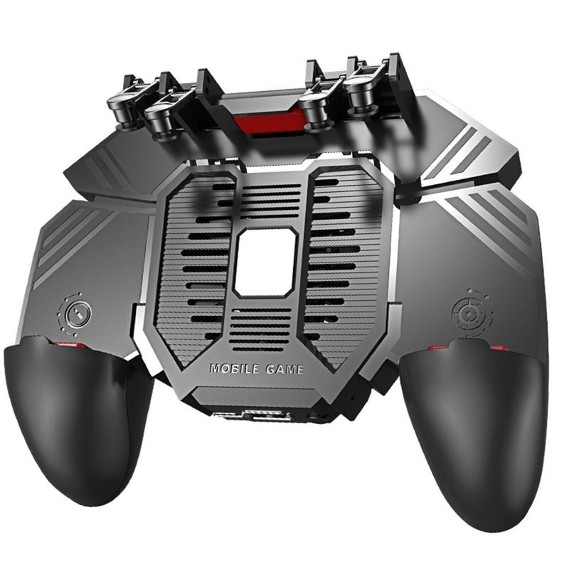 AK77 Mobile Game Controller PUBG Game Controller Gamepad med 6-fingers spiludløser og køleblæser - sort/1200mAh genopladeligt batteri