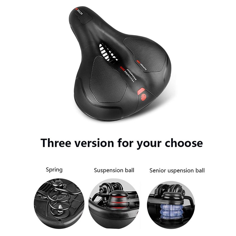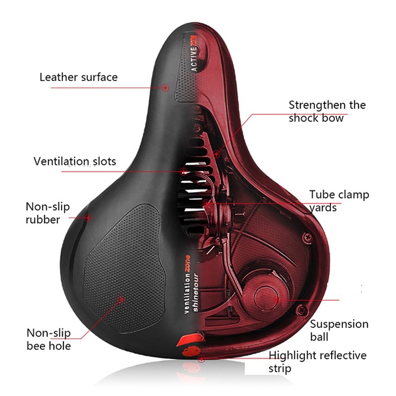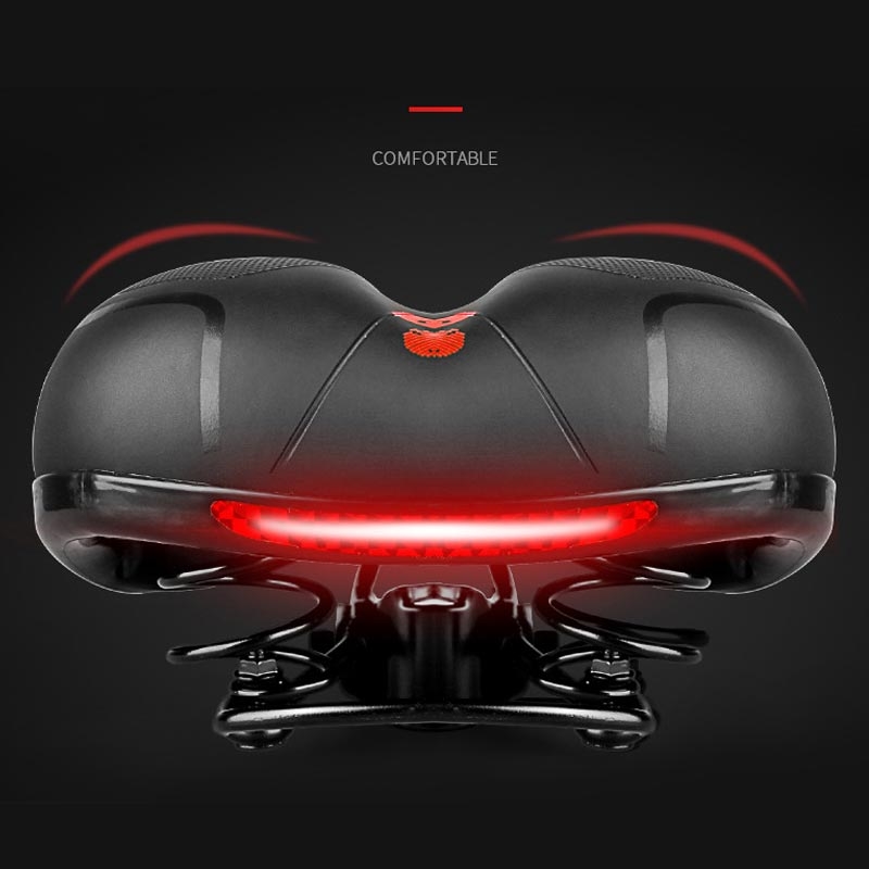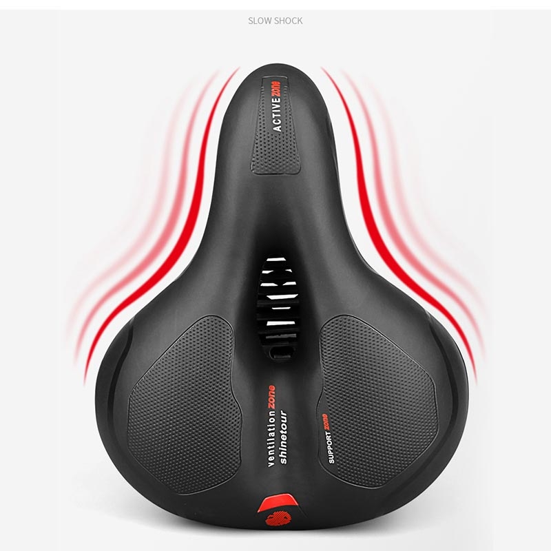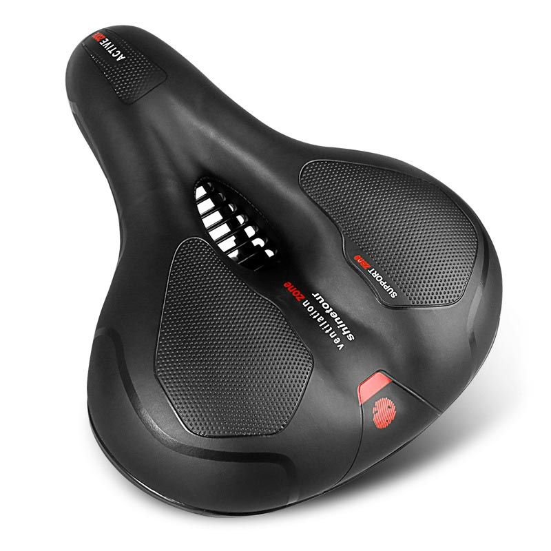 Bredt, blødt polstret cykelsæde - stødsikker, reflekterende cykelsadel med affjedringskugle