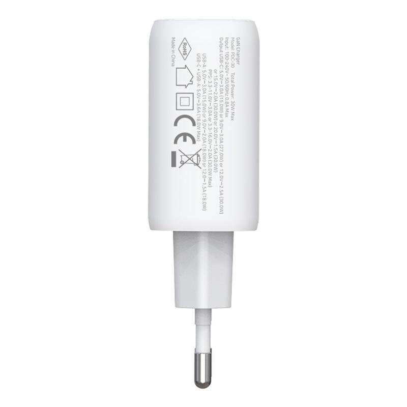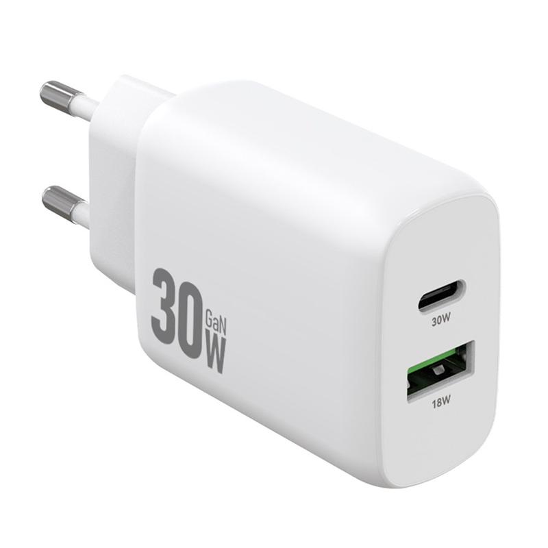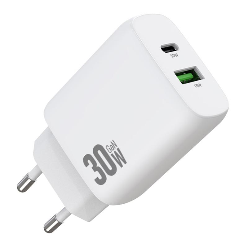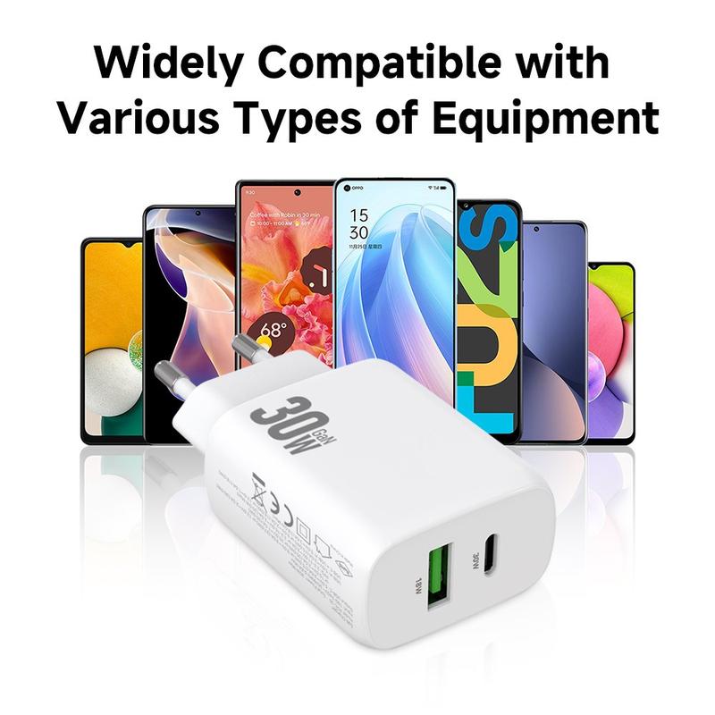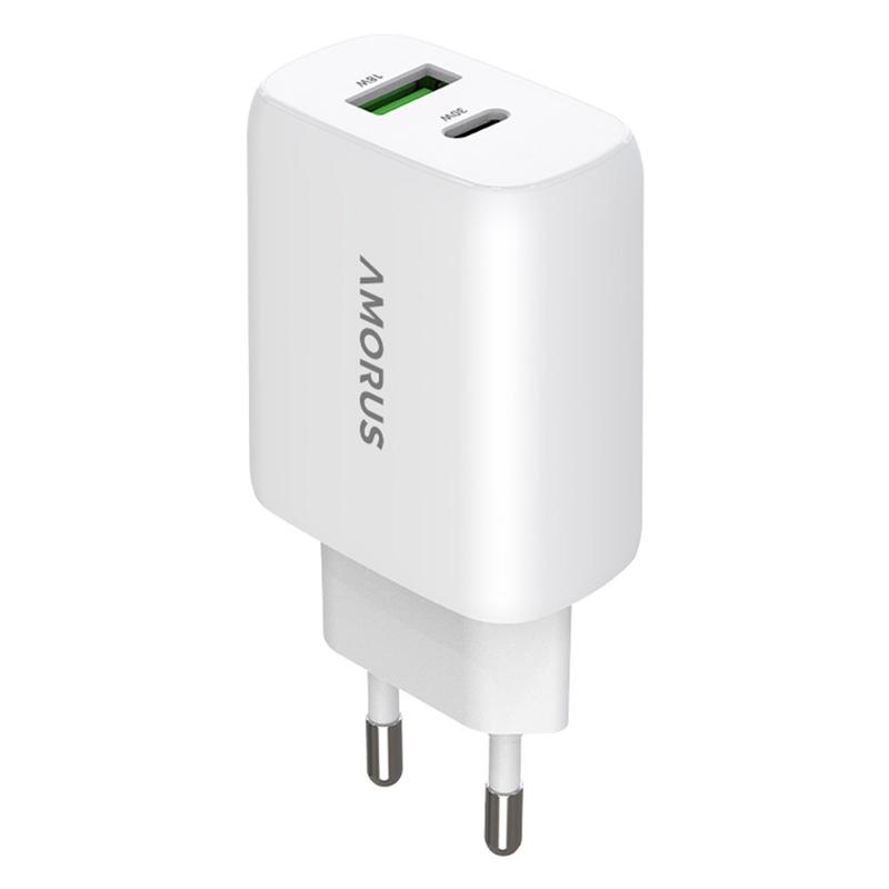 AMORUS 30W GaN hurtig vægoplader - USB-C PD og USB-A QC vægadapter, EU-stik