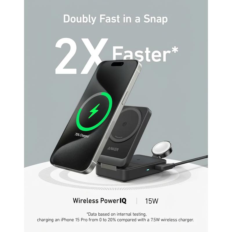 - 1 x Anker MagGo trådløs opladningsstation (3-i-1, sammenklappelig)