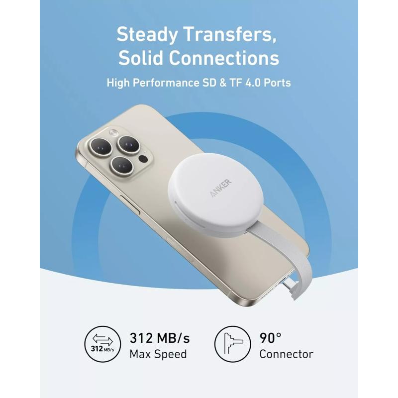 Anker MagGo USB-C-adapteren er en bærbar magnetisk kortlæser, der er designet til hurtig dataoverførsel og problemfri arbejdsgange på USB-C-iPhones. Den er udviklet til enheder i iPhone 15- og 16-serien og giver dig mulighed for at læse SD- og TF-hukommelseskort med høj hastighed, mens du samtidig oplader din telefon. Med et kompakt design, indbygget kabel og magnetisk fastgørelse er den ideel til kreative personer, der hurtigt vil gå fra at optage indhold til at redigere uden afbrydelser.