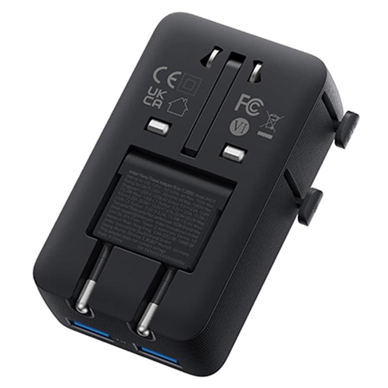 Anker Nano Rejseadapter - Universal strømadapter med 5 porte, 1 AC-, 2 USB-A- og 2 USB-C-porte, 20W hurtig opladning