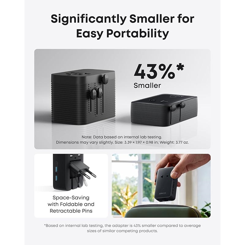 Anker Nano Travel Adapter kombinerer bærbarhed, universel kompatibilitet og opladning af flere enheder i ét smart design. Dens kompakte størrelse sparer plads i bagagen, mens hurtigopladende USB-C-strøm sikrer, at dine vigtige enheder altid er klar. Med avancerede sikkerhedsfunktioner og understøttelse af globale stik er den et vigtigt tilbehør for både lejlighedsvise og hyppige rejsende.